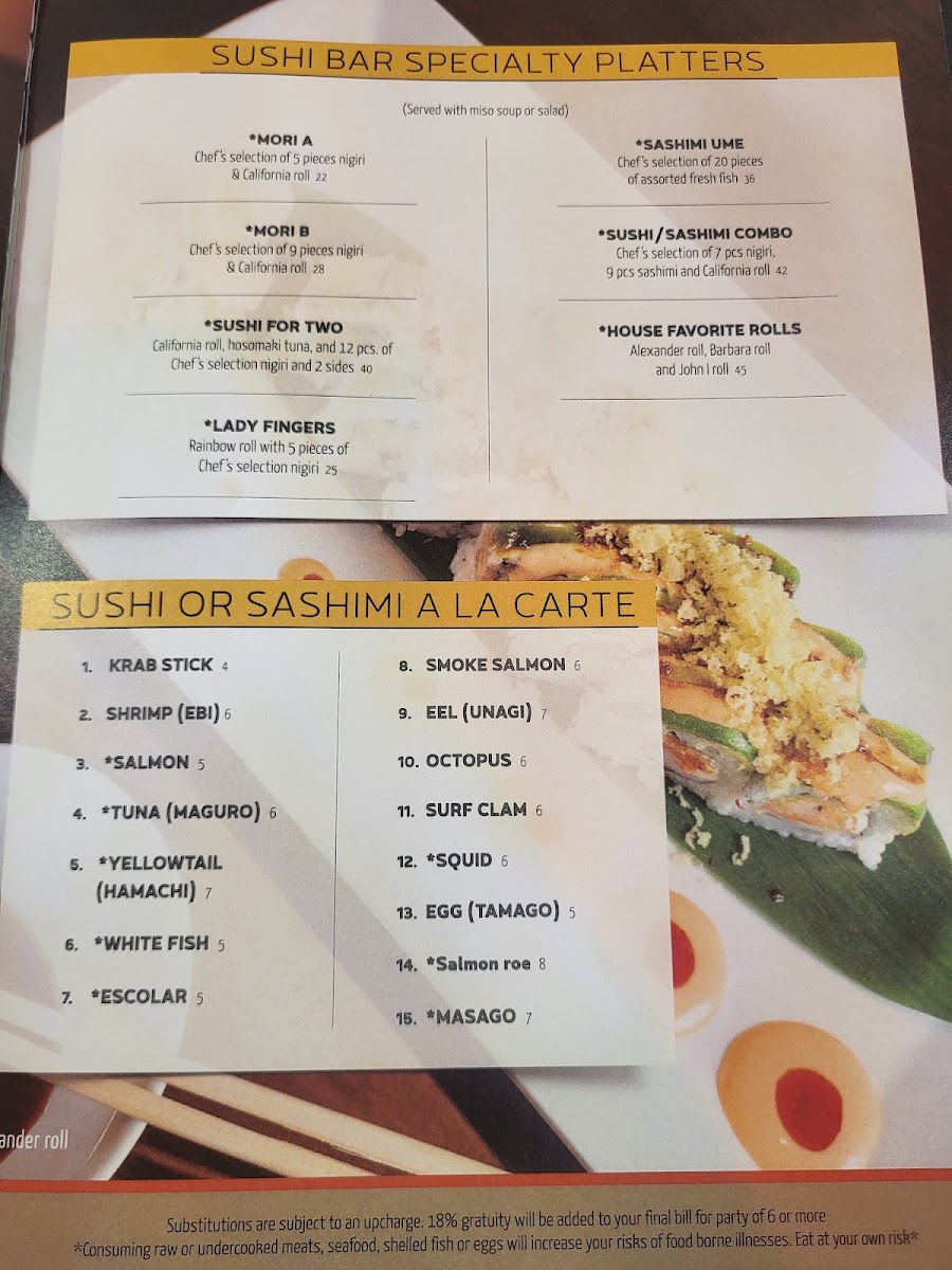 Located in Cutler Bay, Florida, Volcanic Sushi Sake Miami offers an extraordinary sushi experience that combines freshness and flavor. Their diverse menu features specialty platters, perfect for any sushi lover. Highlights include the Chef's selection of nigiri, with options like Mori A (5 pieces for $22) and Mori B (9 pieces for $28), as well as the enticing Sushi For Two platter at $40, ideal for couples or friends to share.